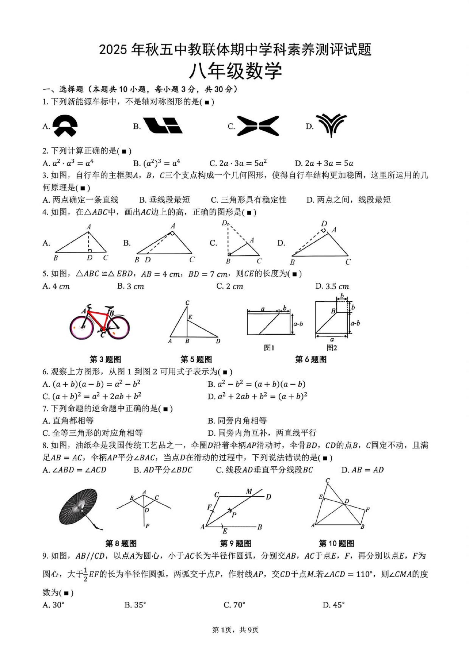 - 1宜昌五中教联体2025-2026学年上学期期中八年级数学试题(PDF版含答案)