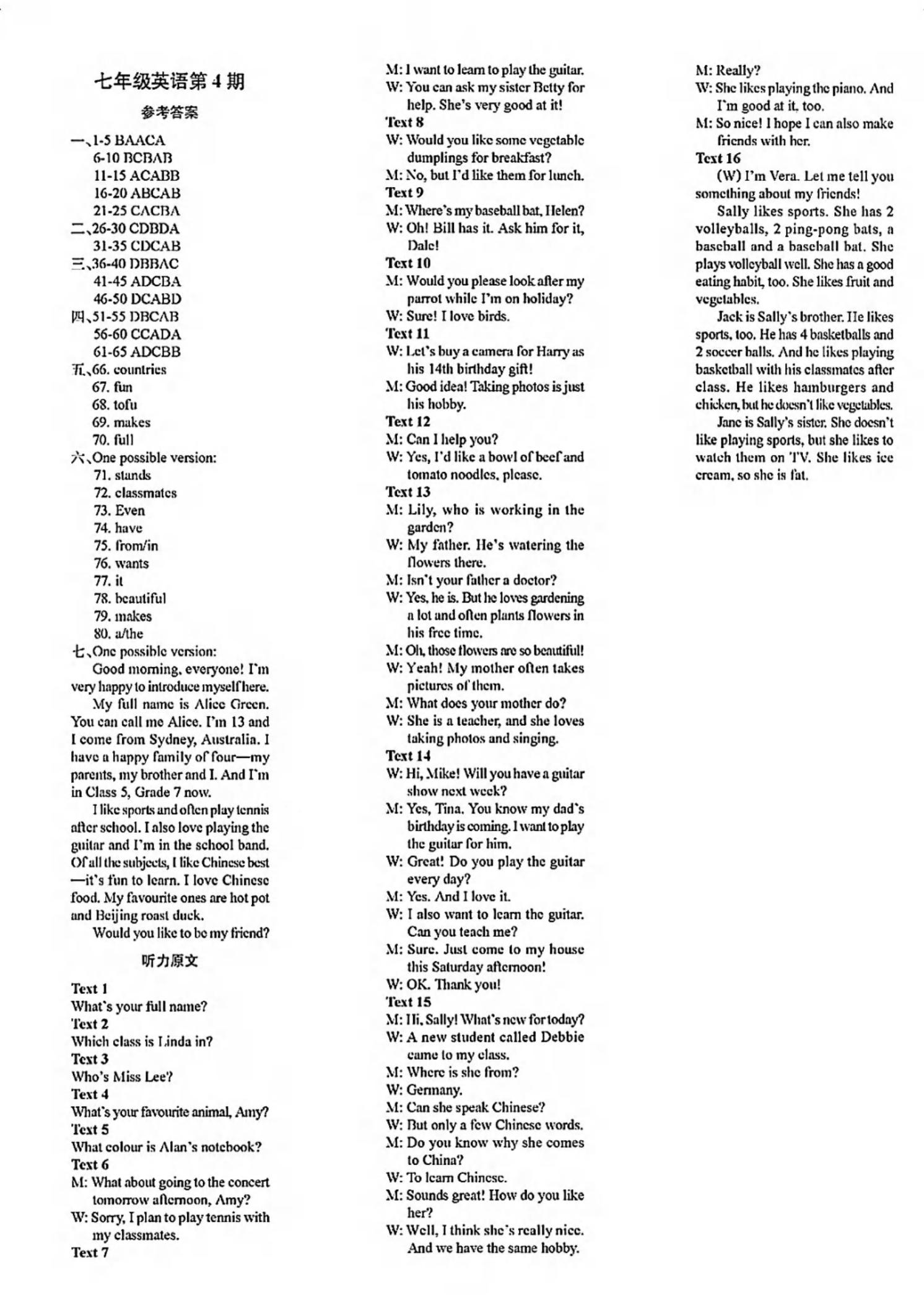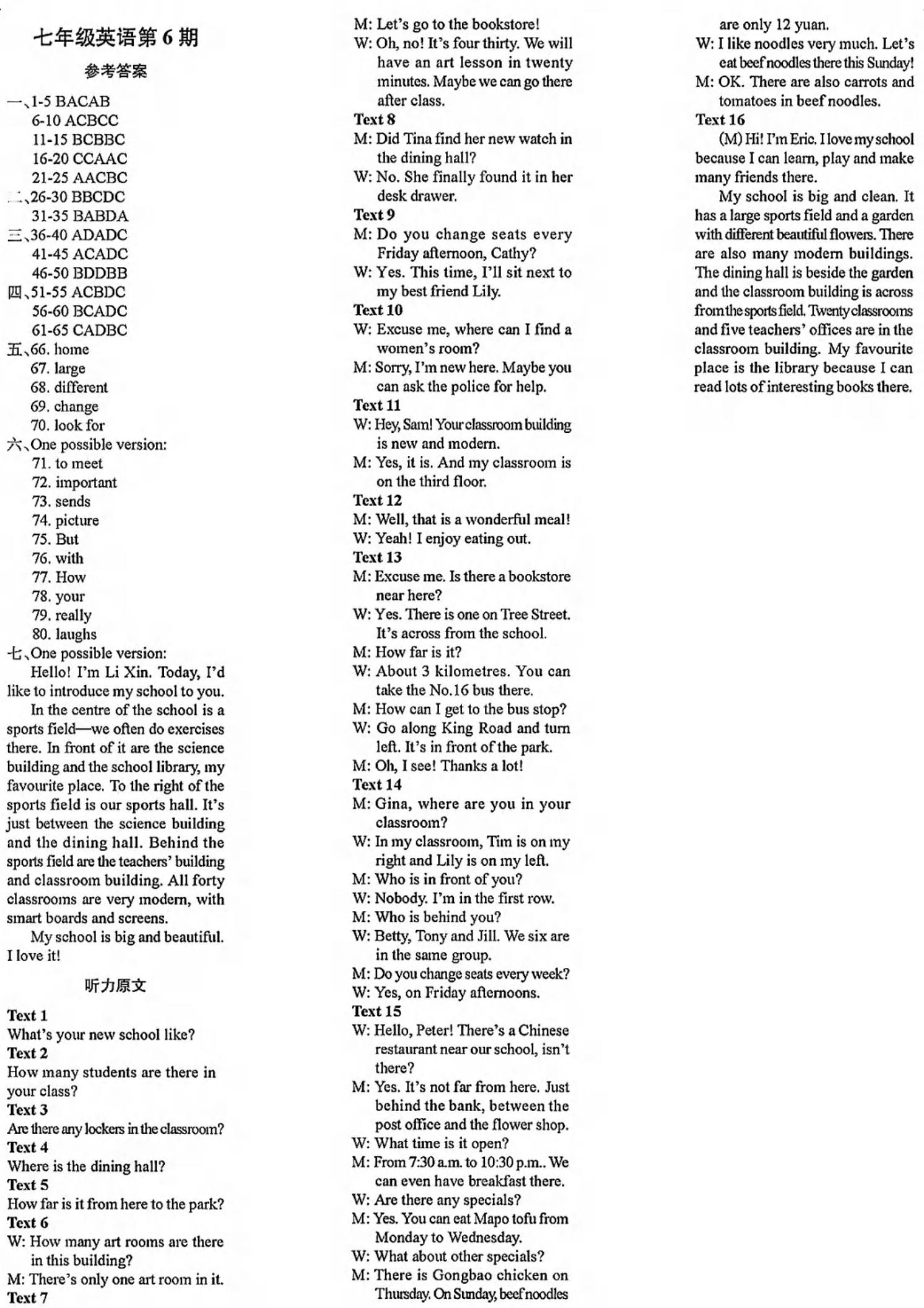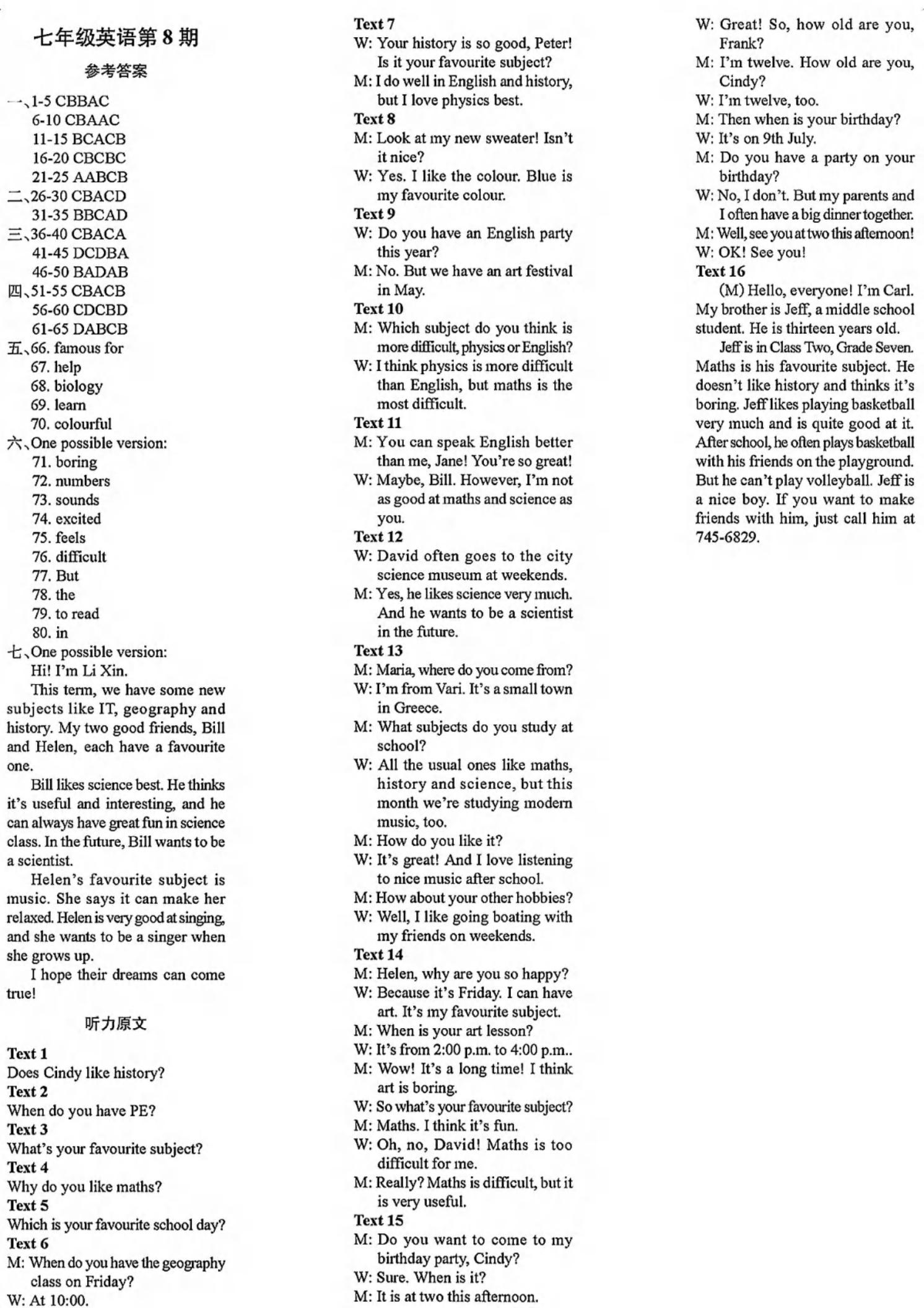 阳光英语周刊2025-2026学年八上英语第1-8期参考答案及听力稿