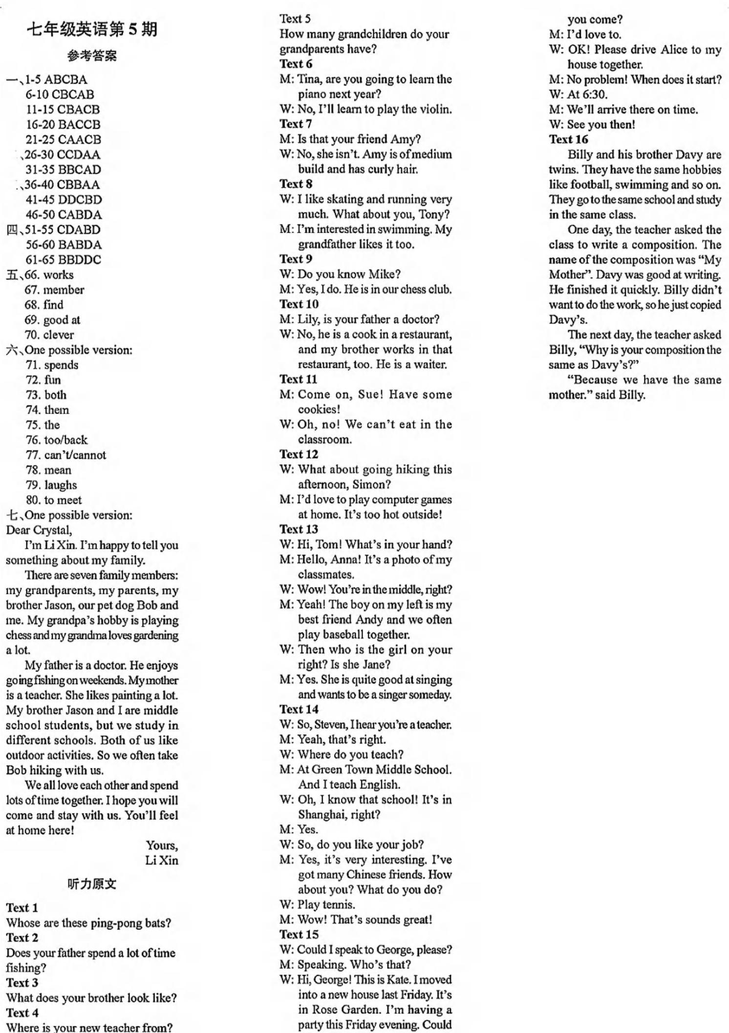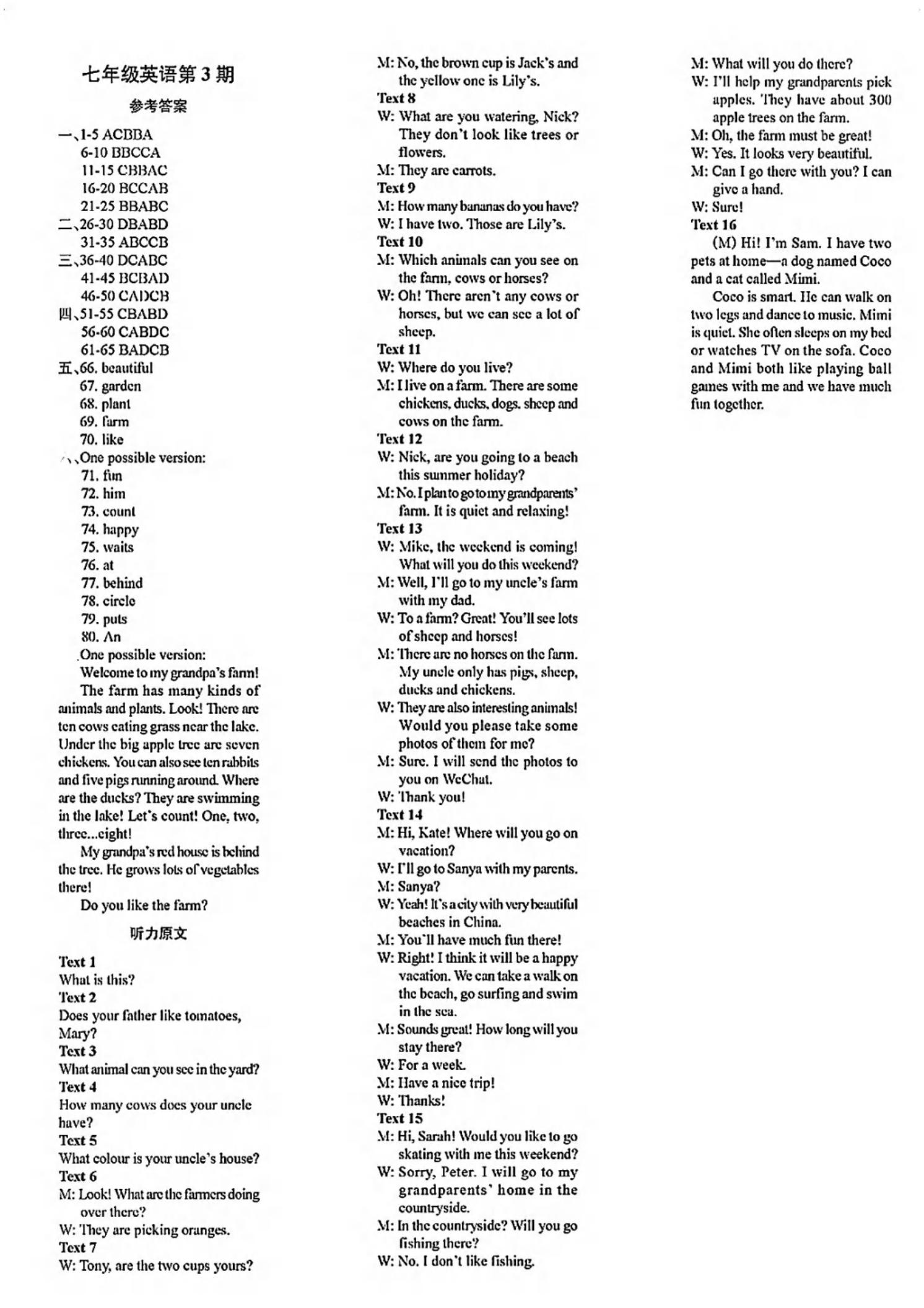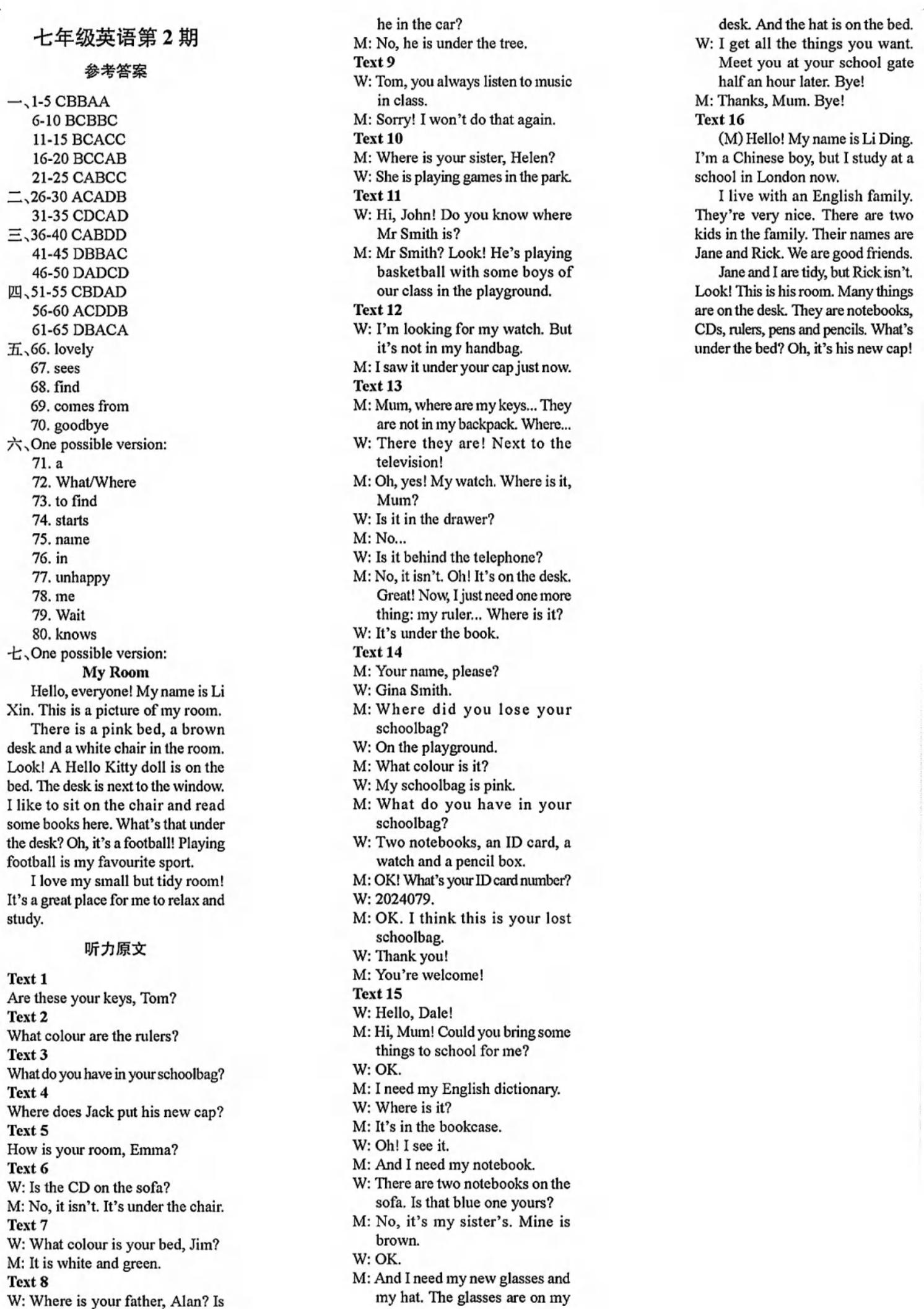 阳光英语周刊2025-2026学年八上英语第1-8期参考答案及听力稿
