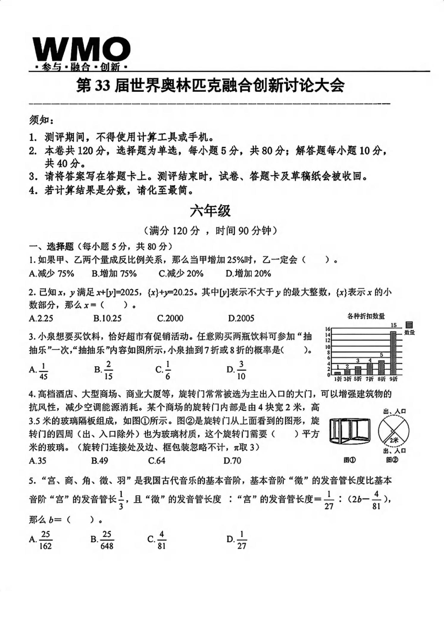 【免费】2025年第33届世奥赛六年级数学复赛试题(PDF版含答案)