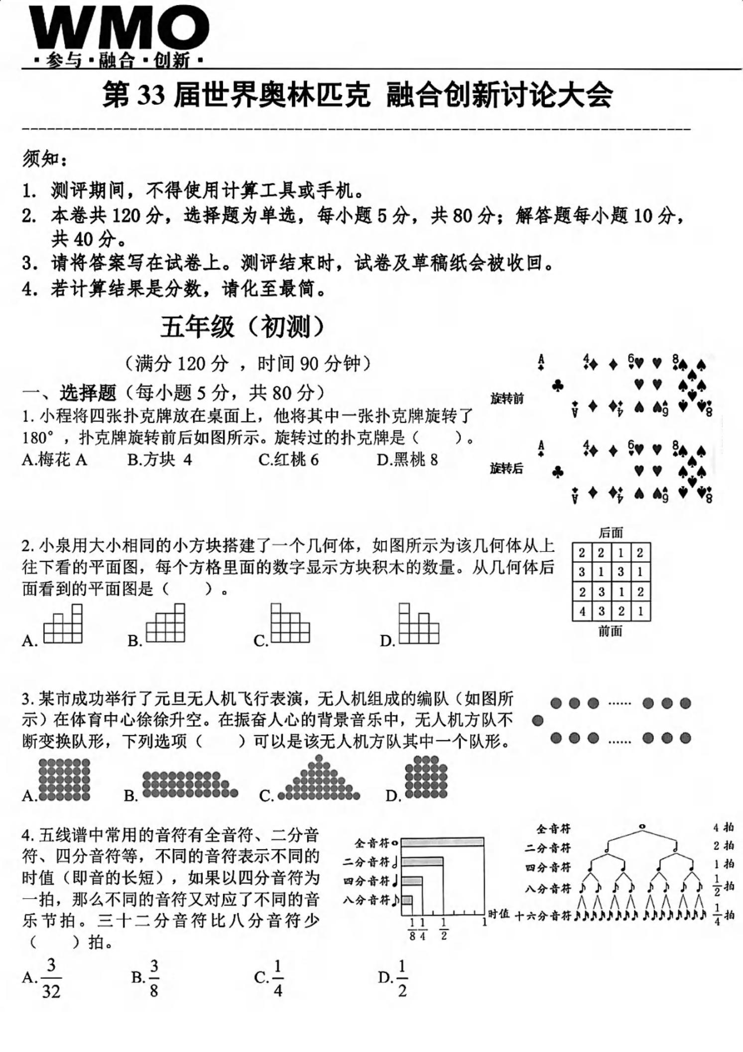 【免费】2025年第33届世奥赛五年级数学初赛试题(PDF版含答案)